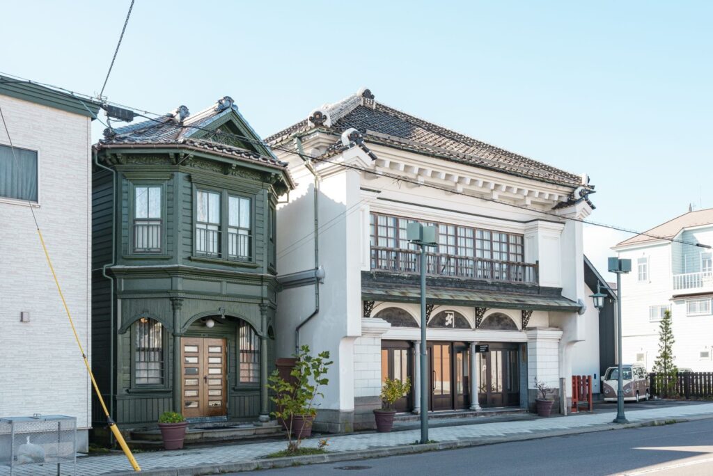 函館で和洋折衷建築としてよく知られるのは、第1話で紹介した小森家住宅店舗のように1階が和風、2階は洋風と、和洋の様式が上下に並んだ外観を持つ建築だ。京町家をはじめ本州以西で見られる町家建築の2階の外観が洋風になったもので、太刀川家住宅店舗もこれに属する。