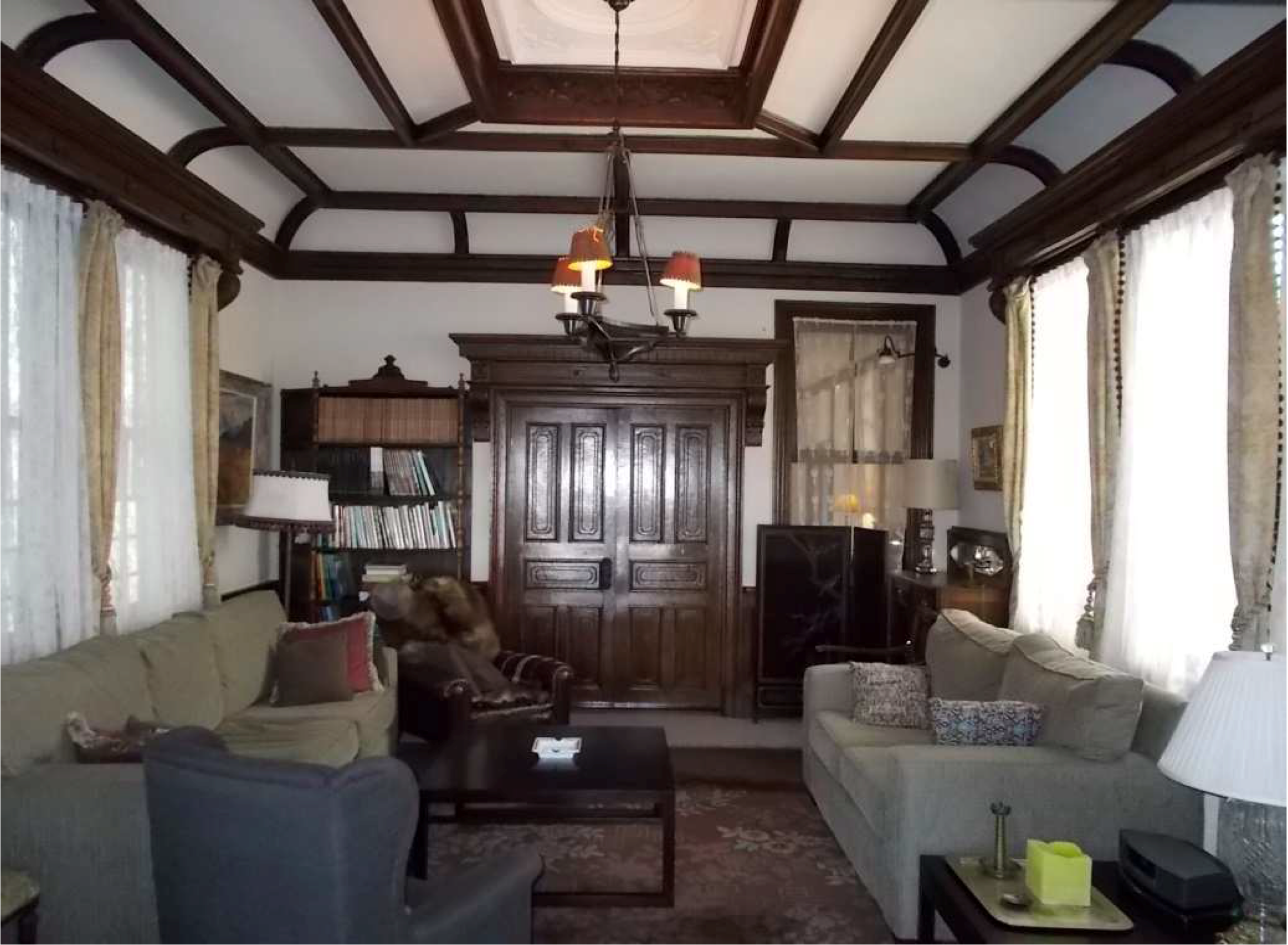 さらに、黒檀の床柱を据えた床の間をもつ和座敷であった2階を洋室化した。1階洋室の壁には淡いピンクにフラワーバスケットの柄の壁紙を張っていたが、古くなり相当傷んでいたため、現在見られるしっくい風の塗壁とした。