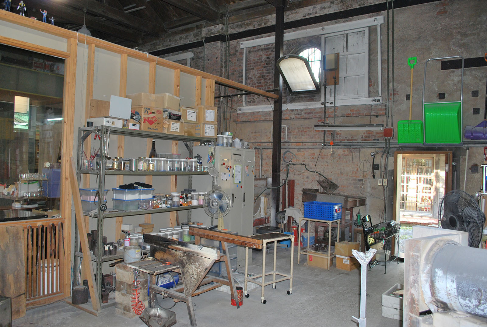 概して、歴史的な建築物の再活用は我慢を強いられる。れんが造で冬の寒さは耐えがたい。しかし、窯の火を絶やさないガラス作りの仕事では、寒さを感じることがないという。れんが造は火事の心配も少ない。「火を焚(た)くことで、この建物が活(い)きてくる」。30年以上、この建物を使い続けて来た水口の言葉には重みがある。