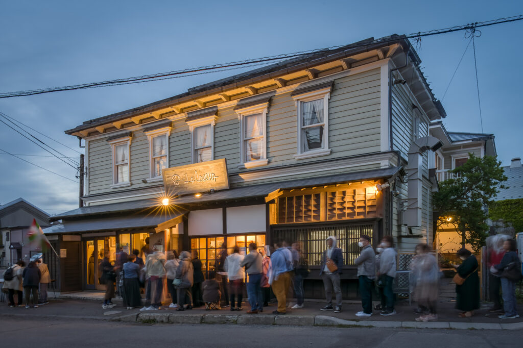 1.上下和洋折衷様式の「ラ・コンチャ」。「函館西部地区バル街」の夜、明かりがともり、人びとが集う